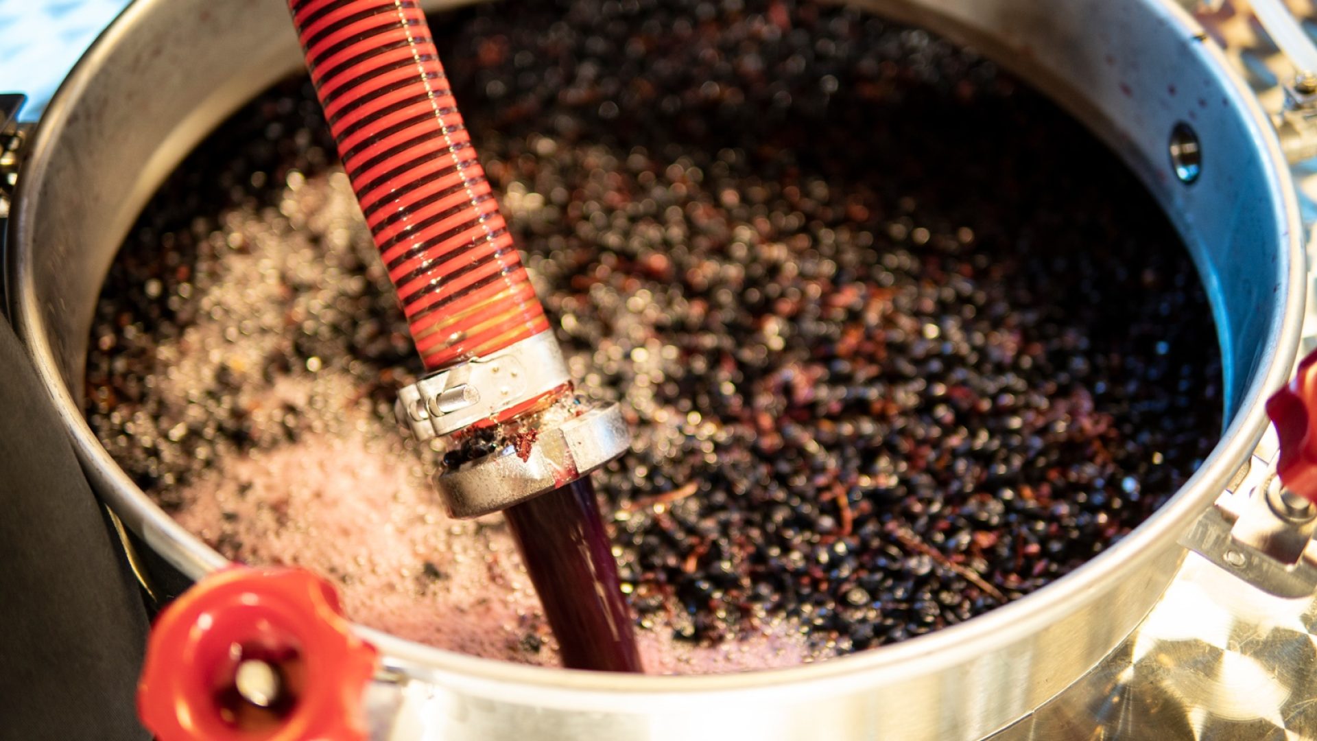 Vinmakarna drar slangar från tankarnas botten till topp och musten pumpas över sina skal flera gånger om dagen. Överpumpning är en viktig del i hantverksförloppet, både för vinets färg och smak.