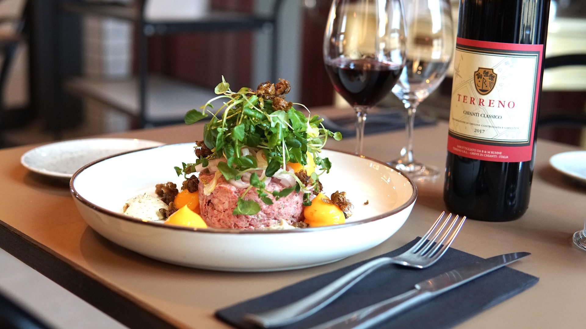Genom att välja "rätt" vin kan du få råbiffen att smaka ännu bättre. Druvsorten sangiovese till exempel, har en karakteristisk läskande syrlighet som passar perfekt till krämigheten i råbiffen. A match made in heaven!