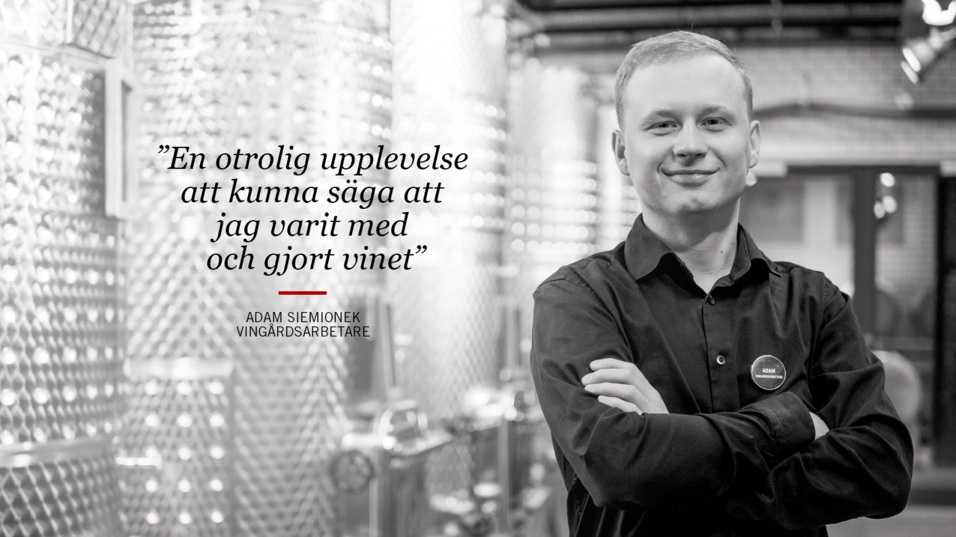 Det här är Adam. Hans jobb på The Winery Hotel är både unikt och otroligt roligt. Han njuter av att vara en vingårdsabetare eftersom det är som att vara en del av en stor familj.