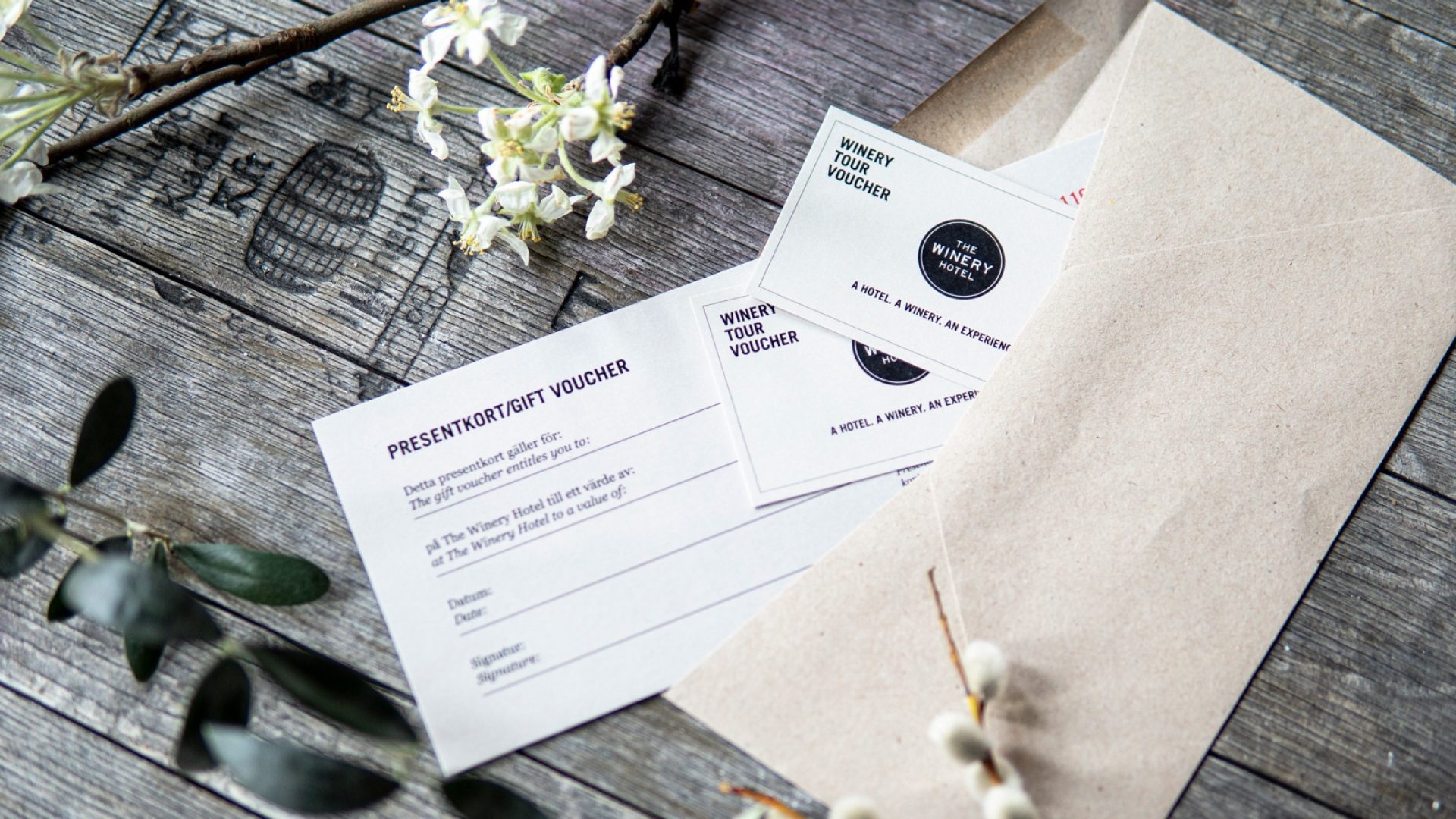 Presentkortet förpackas fint tillsammans med två vouchers som gäller för guidad tur samt inspiration och bilder från hotellet. Om du vill kan vi skicka presentkortet direkt till personen du vill muntra upp. Och, det gäller även om personen du vill muntra upp är dig själv.