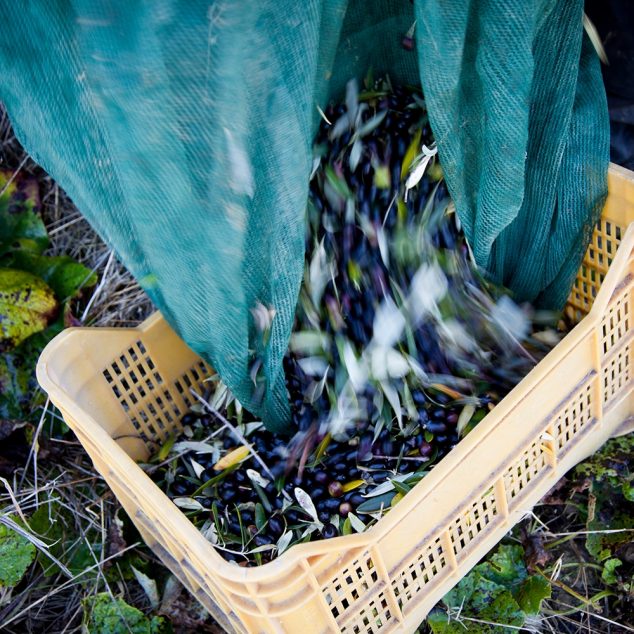 De placeras i luftventilerade tråg för att bärgas till frantonion (pressen). Vi plockar våra oliver med samma filosofi som vi skördar våra druvor, fält för fält för att säkerställa den slutgiltiga kvaliteten.