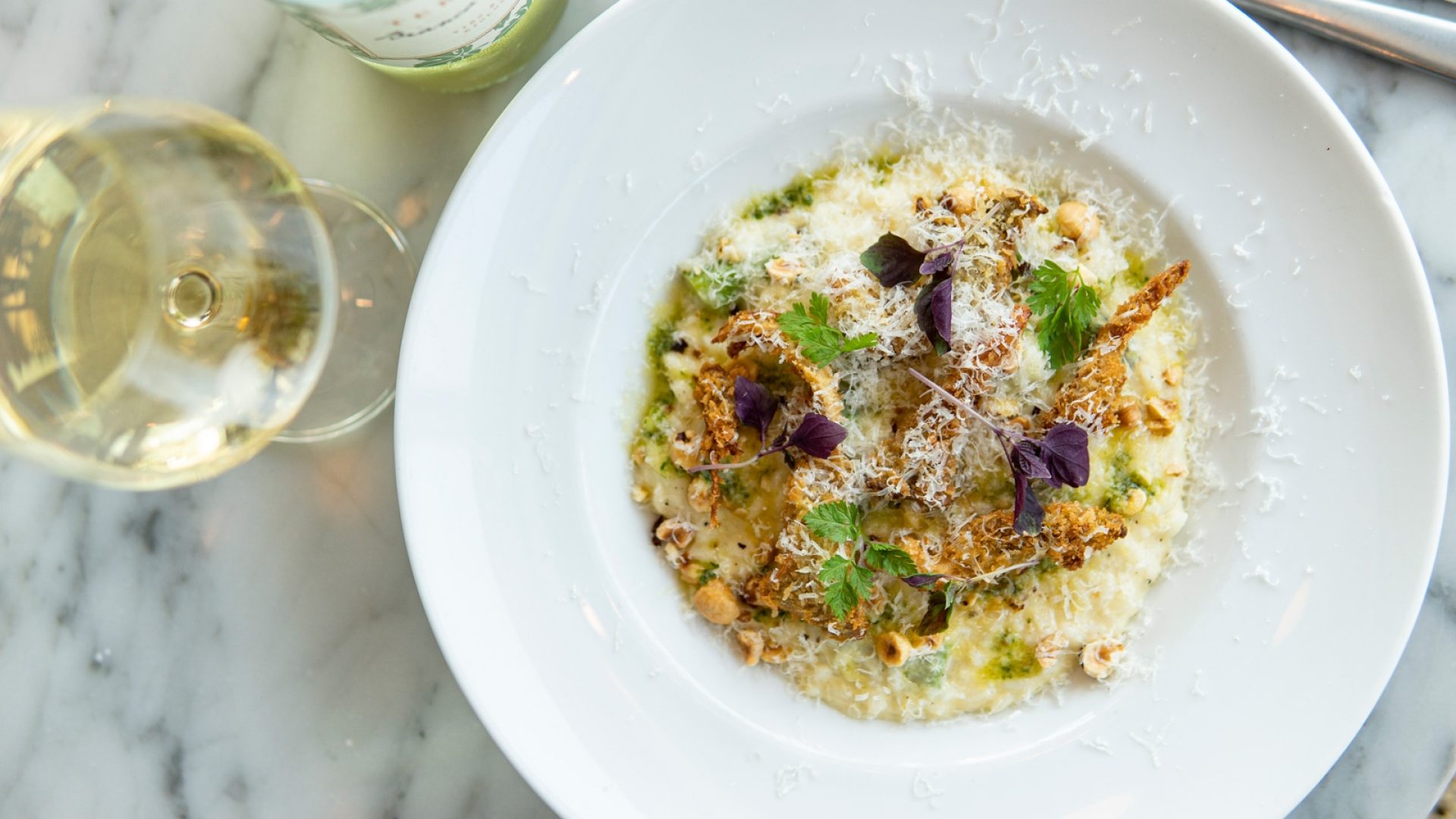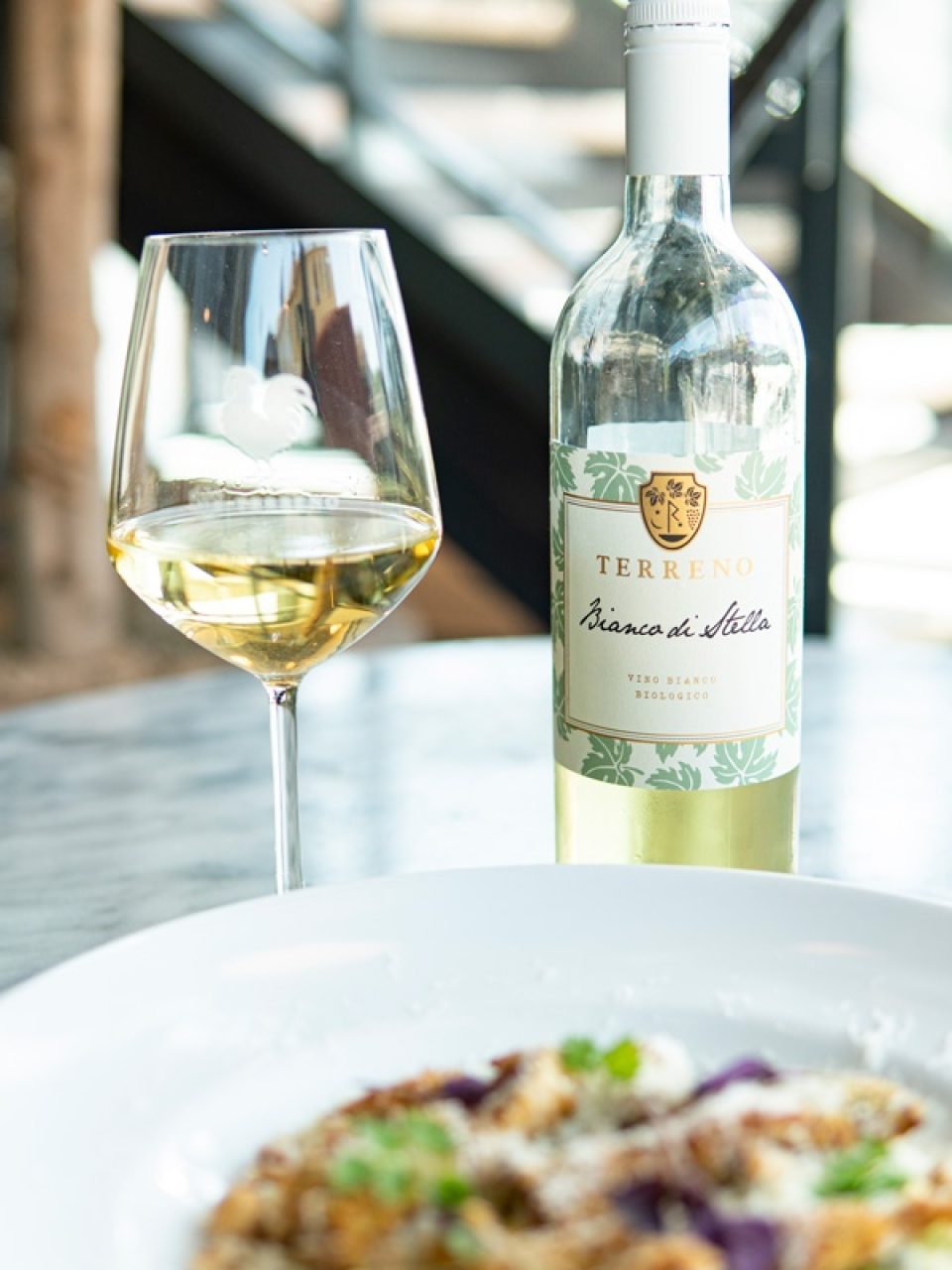 Det perfekta vinet till den här rätten är lätt, friskt och med en ton av citrus och mandelblom. Syrligheten balanserar det krämiga i risotton och de delikata smakerna på tallriken lyfter med det här läskande vita.