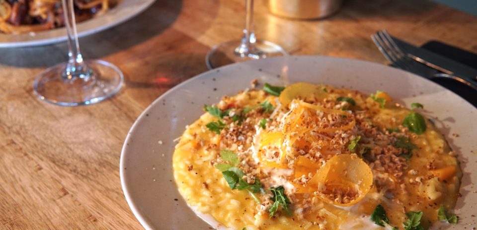 Den här krämiga risotton balanseras av knapriga hasselnötter i brynt smör och den friska smaken av picklad blomkål. På toppen, riven tryffel "a volontà".