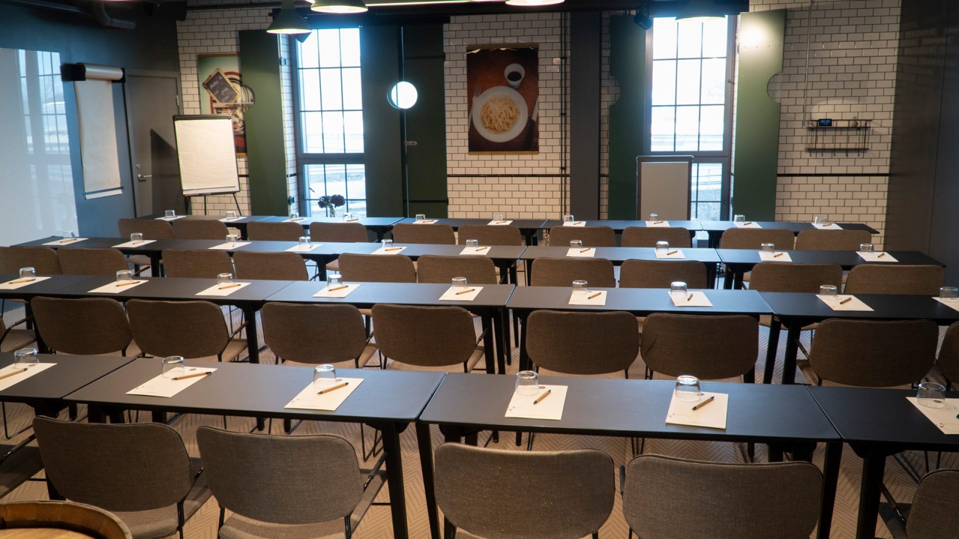 Det större sällskapet där deltagarnas fokus ska riktas rakt fram samtidigt som de behöver ha möjlighet att anteckna. Utmärkt för föreläsningar eller utbildningar!