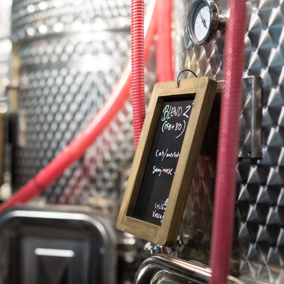 De sorteras varsamt, avstjälkas, pressas och pumpas in i vineriets tankar. Detta sker under ledning av familjen Ruhne som gjort vin på vingården Terreno i Toscana i 35 år. Den samlade kunskapen om vin och vinmakeri har de tagit med sig till oss. Framställningen av ett rött- och ett rosévin uppgår i cirka 12000 flaskor årligen.