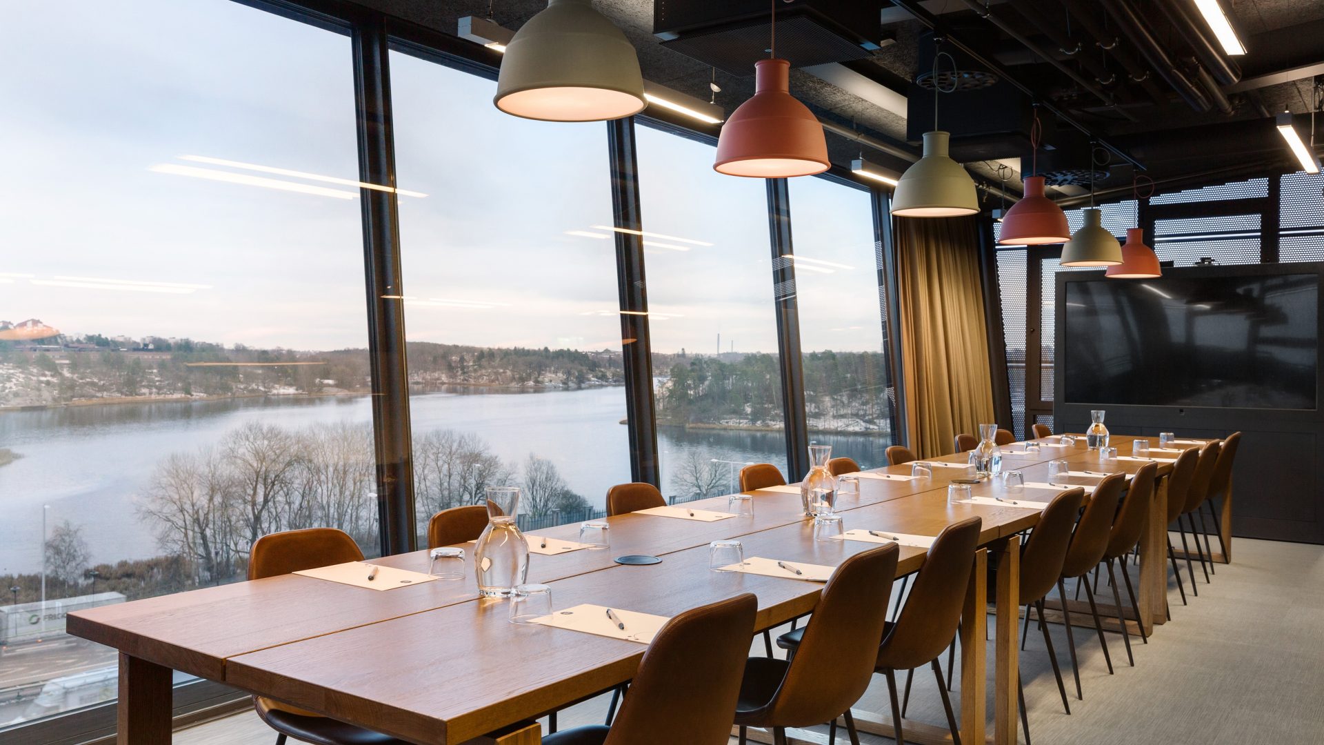 Winery Rooftop is our rooftop venue with at The Winery Hotel, located in the cyclops-shaped sculpture on the roof of the building. With breathtaking views of Brunnsviken and Haga Park, the room is perfect for the creative meeting, the memorable wine tasting or the unforgettable dinner. The room can seat a maximum of 19 people in board seats and has floor-to-ceiling windows.
