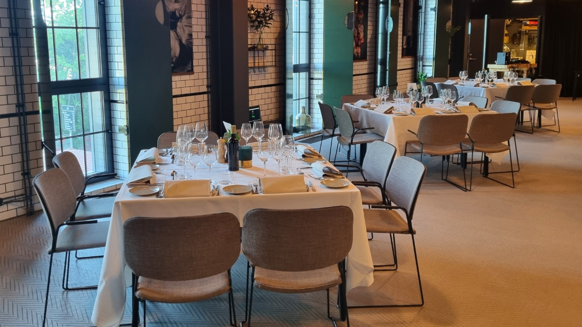 På samma plan ligger restaurangen för lunch och middag. En trappa ned, på entréplan finner du vår lobby och eventlokal.