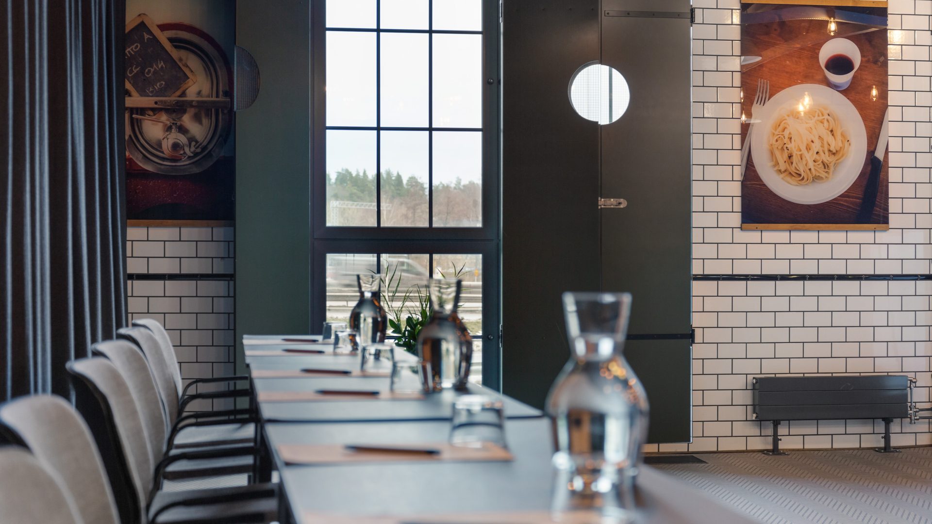 På samma plan ligger restaurangen för lunch och middag. En trappa ned, på entréplan finner du vår lobby och eventlokal.