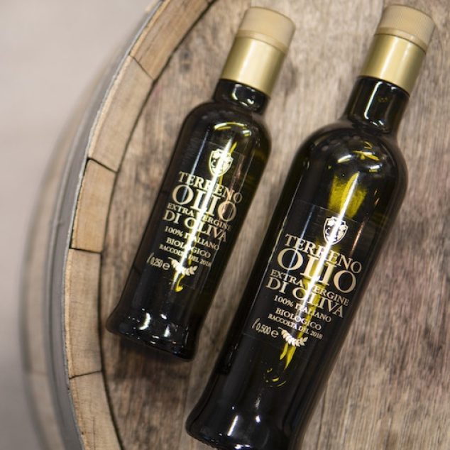 Terreno Extra Vergine Olio di Oliva kommer från våra egna ekologiskt odlade olivträd vilka skördas för hand, fält för fält på vår egen vingård, Terreno i Toscana. Med en smak av choklad, gräs och med ett pepprigt avslut passar vår olivolja som en extra krydda till alla maträtter. Låt det gröna guldet från Toscana förgylla din kollega eller kunds tillvaro.