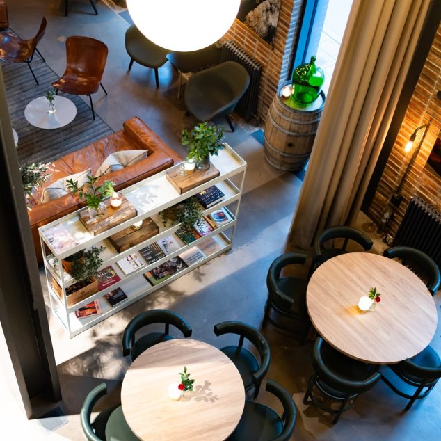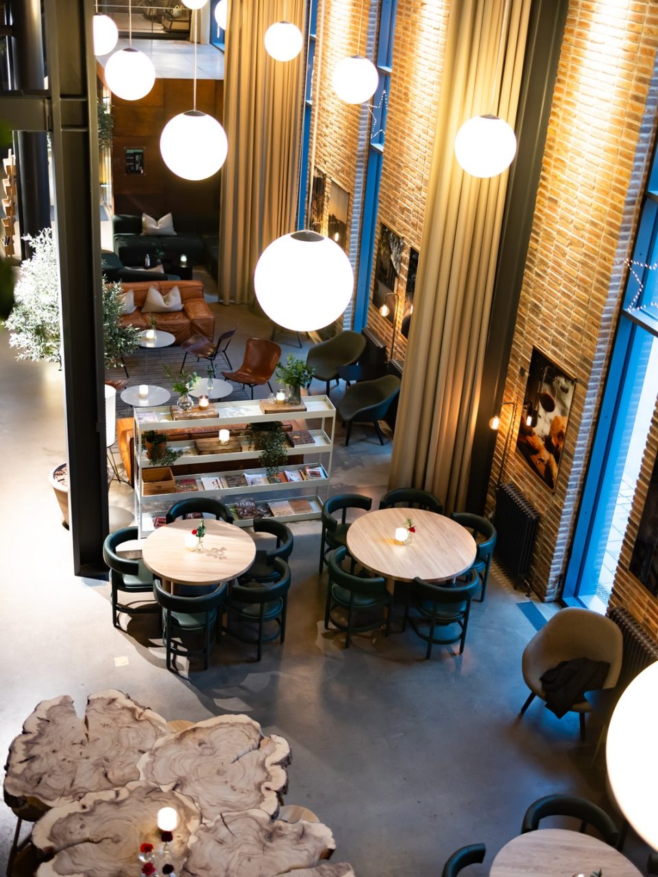 Här befinner ni er mitt i händelsernas centrum, längst in i den vackra lobbyn, en levande lokal med delvis avskildhet.