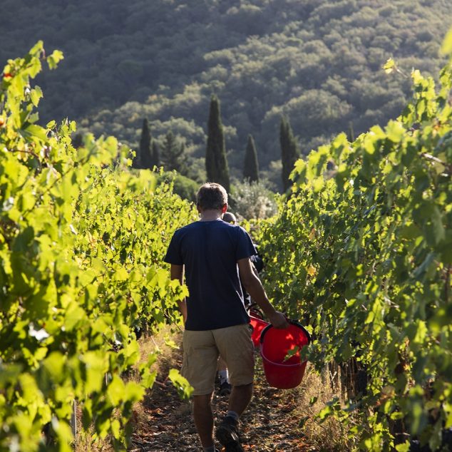 Parallellt arbetar vi hängivet med att ständigt utveckla nya viner, bland annat av druvor som inte är typiska för Toscana. Genom att frångå traditionella druvor och metoder kan vi skapa viner med helt egna karaktärer. Ett exempel är Terreno Momento Massimo IGT, vår supertoskanare.